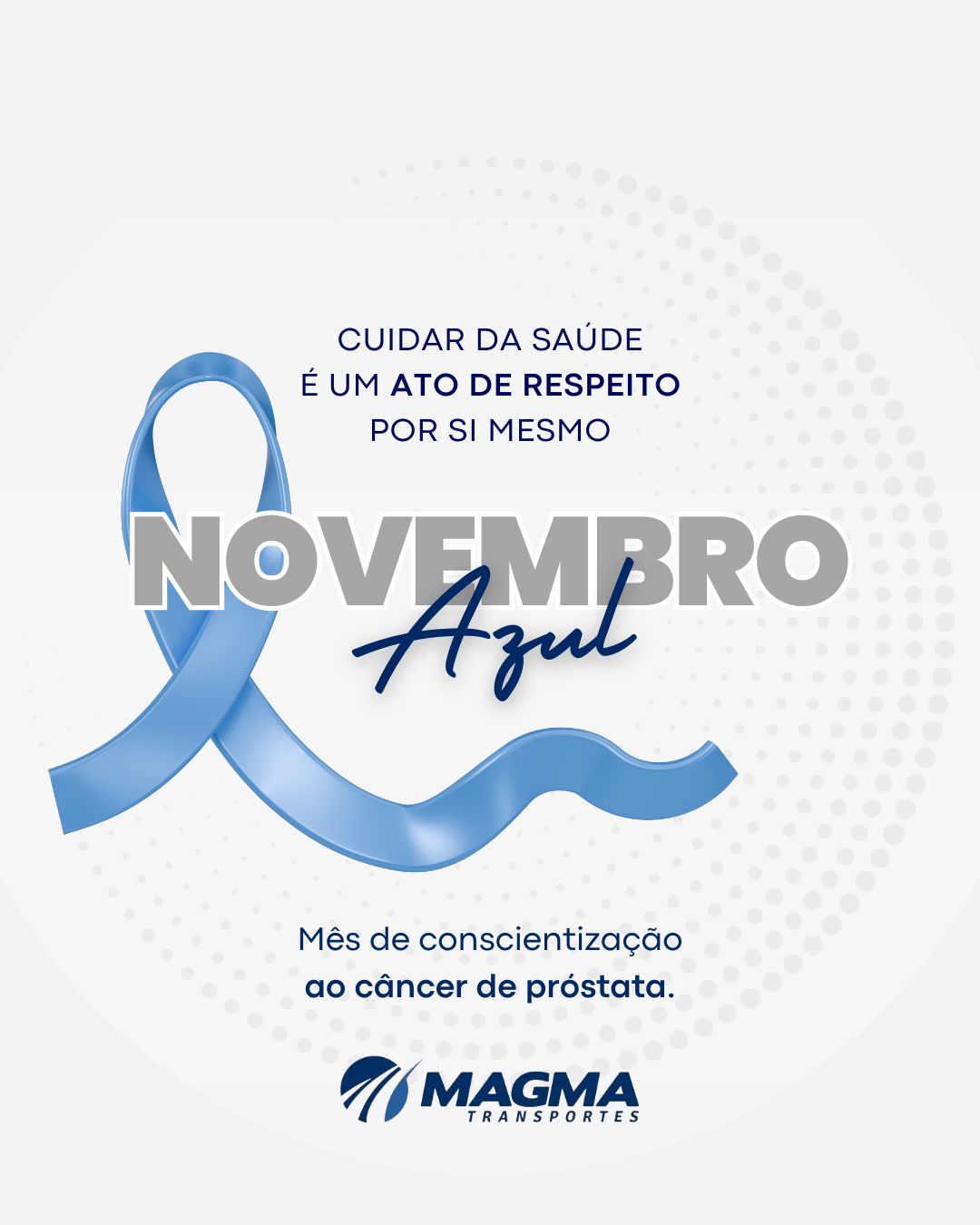 A Magma Transportes apoia a campanha Novembro Azul e reforça seu compromisso com a saúde por meio da conscientização e da prevenção. Faça o exame preventivo do câncer de próstata e incentive colegas, amigos e familiares a fazerem o mesmo. Cuidar também é um ato de responsabilidade e aor pela vida!💙